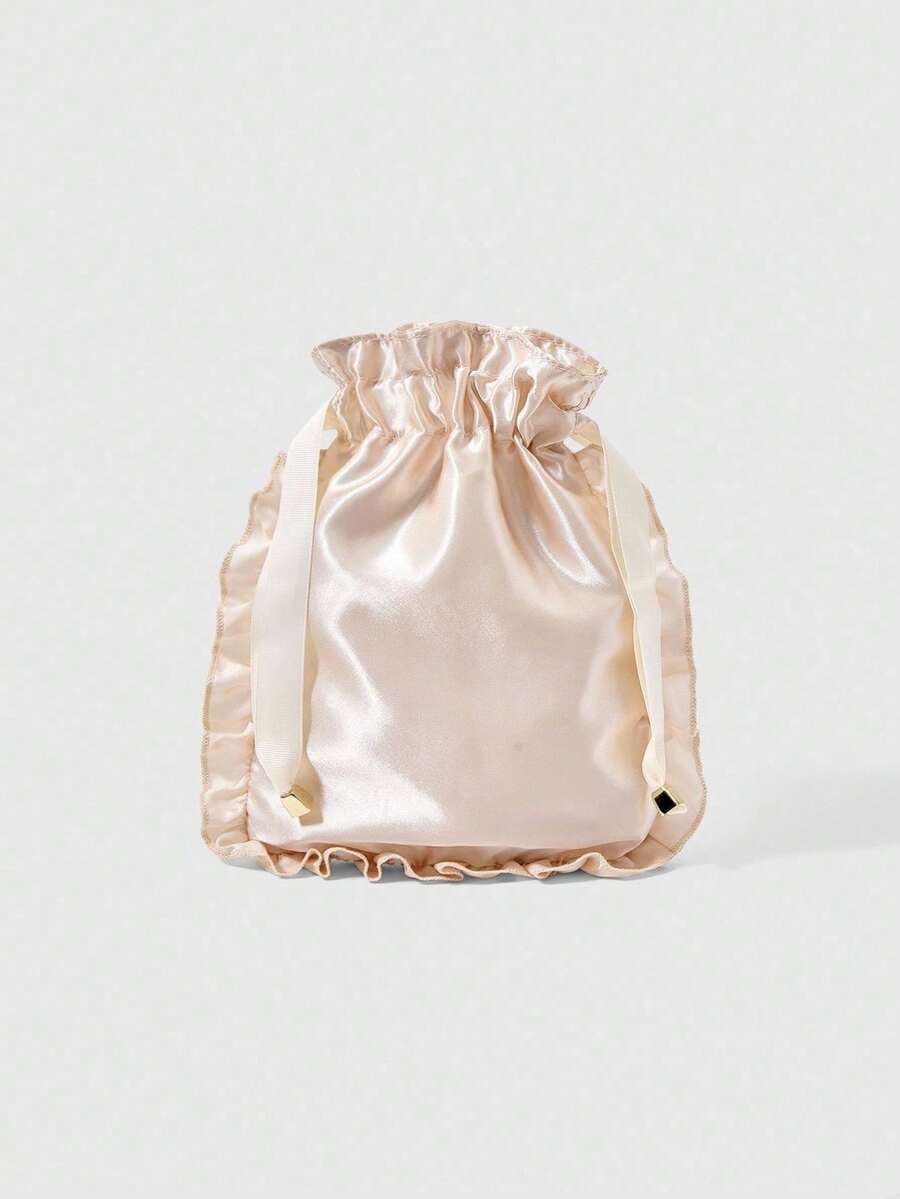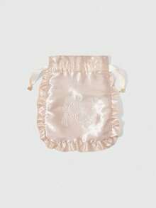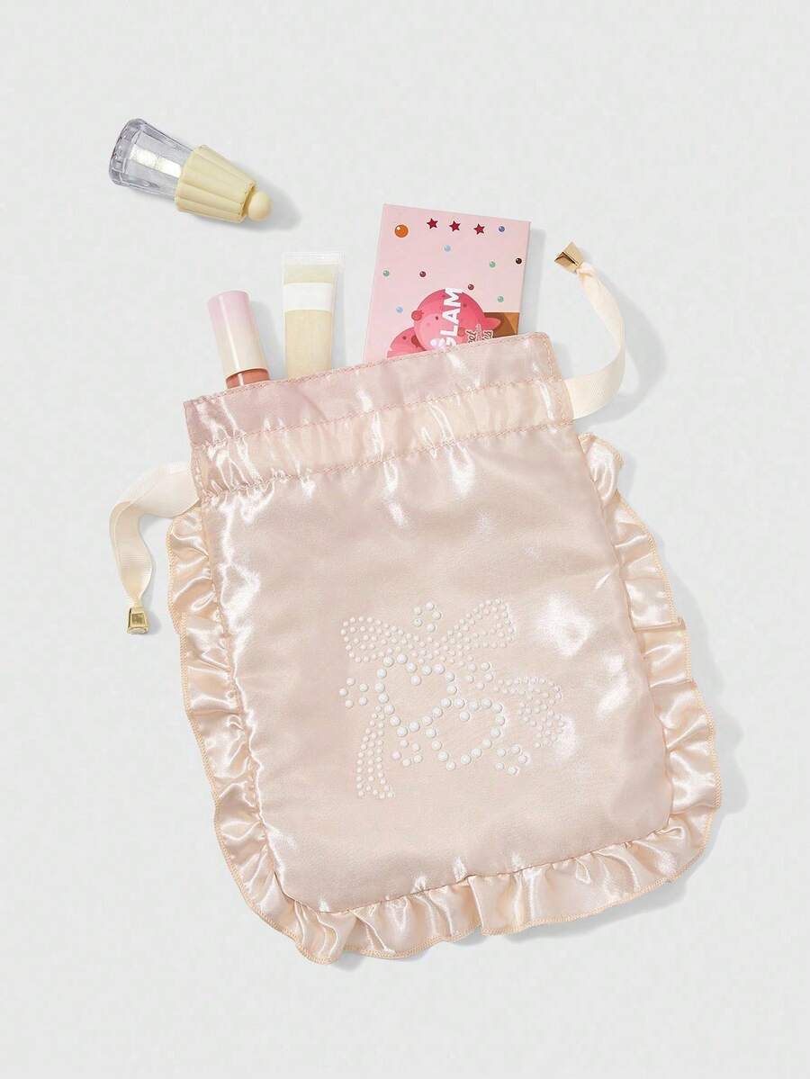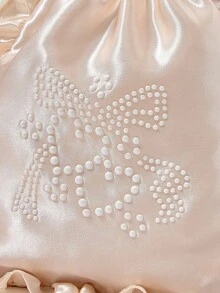 Kawaii Bestickter Perlen, Herz & Schleife Kosmetiktasche, Reise Unterwäsche Aufbewahrungstasche mit Kordelzug