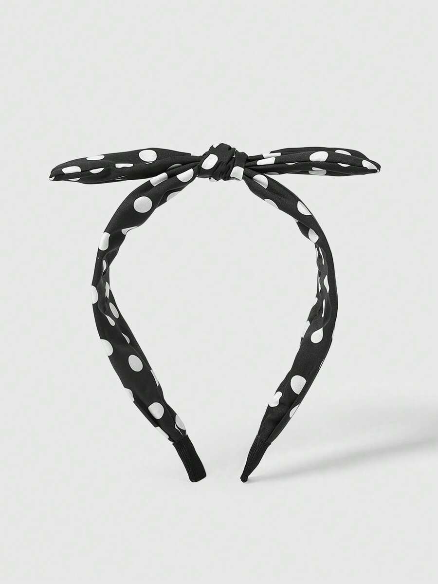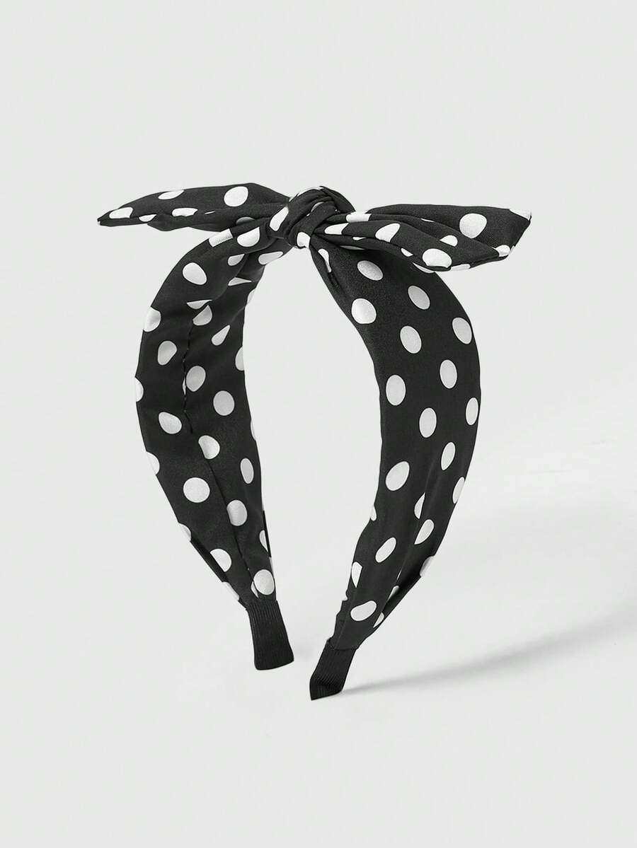 Kawaii Französischer Stil schwarze Haarspange mit großer Schleife und Punktemuster Stoffdesign, einfaches und elegantes Haarzubehör, Haarband, Haarreifen