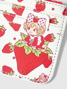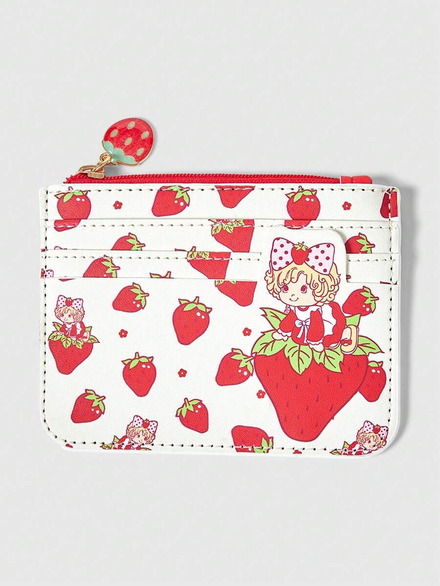Kawaii Kartenetui und Münzbörse mit vollflächen Erdbeermuster