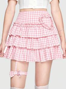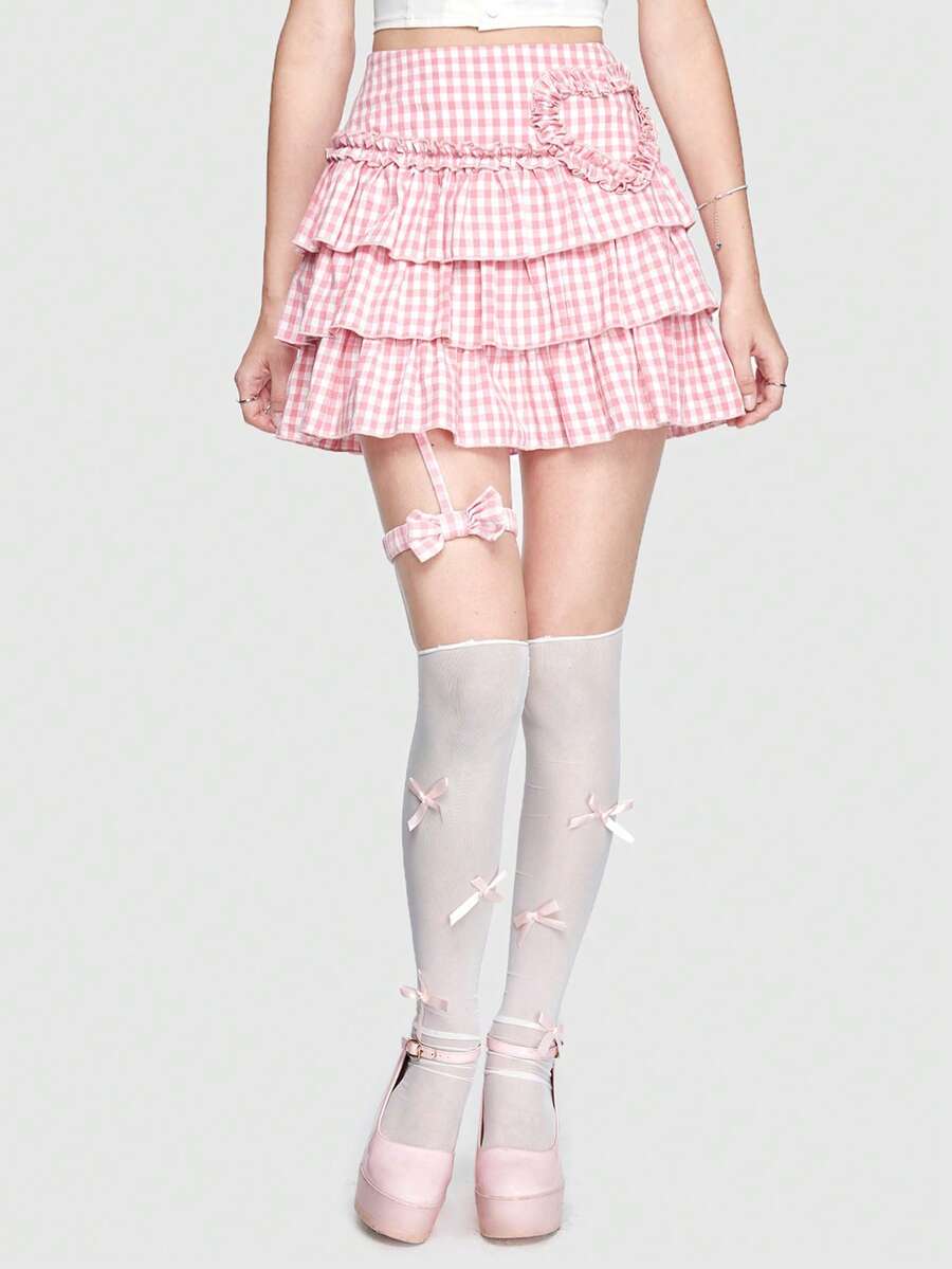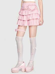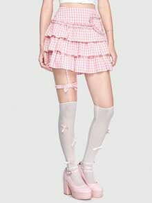 Kawaii Rock mit Gingham Muster, Schleife Dekor, Rüschenbesatz,