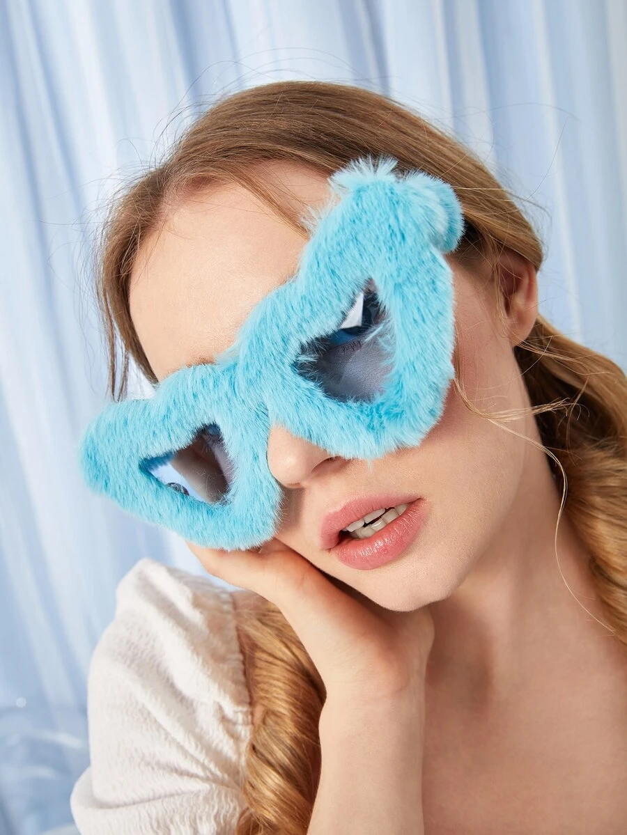 Kawaii Mode Brille mit Herz Design, fusselig