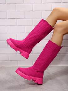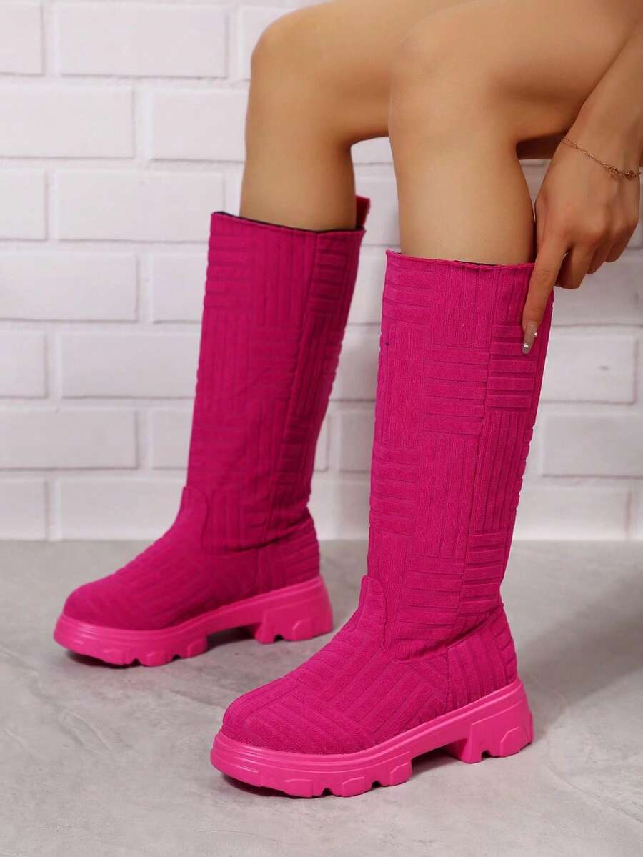 Kawaii Stiefel Hot Pink klobigem Absatz, Mittelkalb