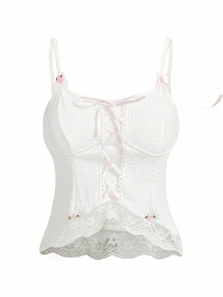 Kawaii Geschnürtes Himekaji Kontrast-Spitzen-Trägerhemd, Schule