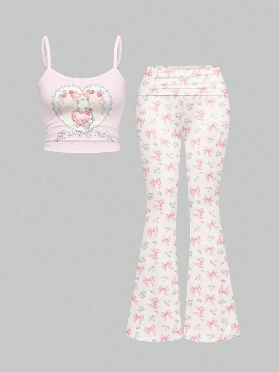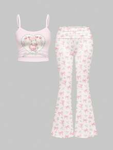 Kawaii [Lingerie] Sexy Träger-Camisole mit geraffter Taille und weiter Hose Damen 2 Stücke Set