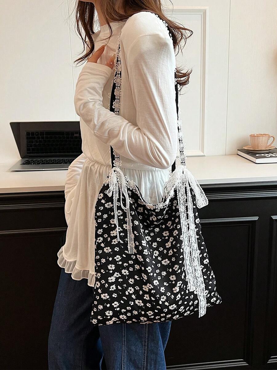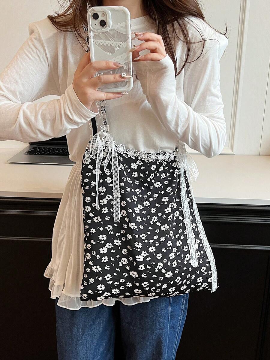 Kawaii Neue Damen Umhängetasche, Blumen Spitze Handtasche, Lässig Fee Tasche, Gänseblümchen Stoff Tasche