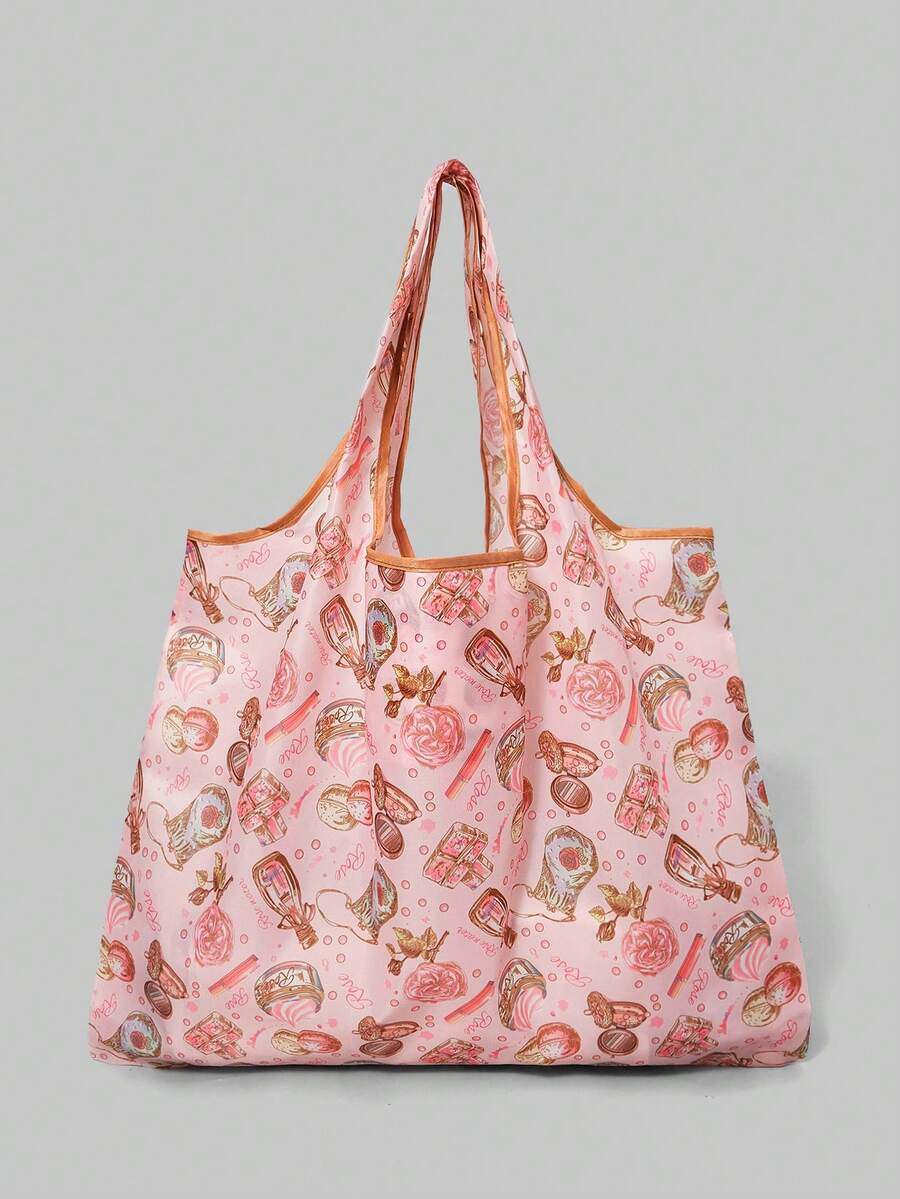 Kawaii Übergroße Einkaufstasche mit niedlichem Cartoon Muster, wasserdicht, tragbar zum Einkaufen und 1 Münzgeldbörse