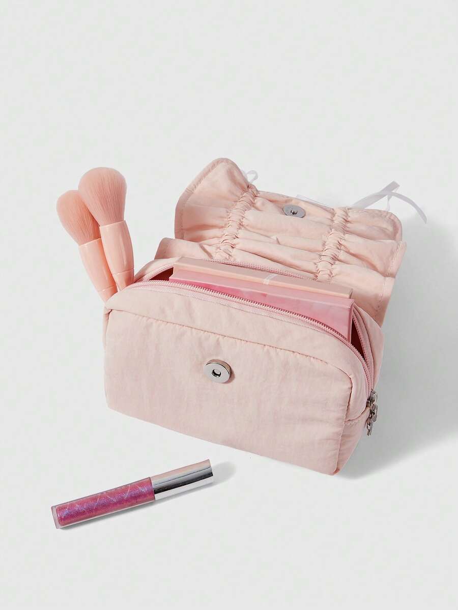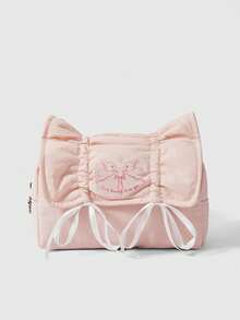 Kawaii Rosa süße Kordelzug Schleife Erdbeere Buchstaben große Kapazität tragbare Kosmetiktasche Federmäppchen