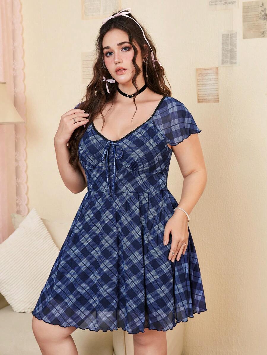 Kawaii Kleid mit Plaid Muster, Knoten vorn,