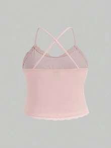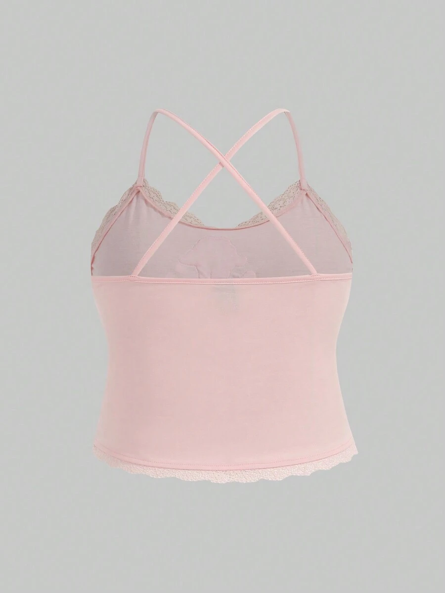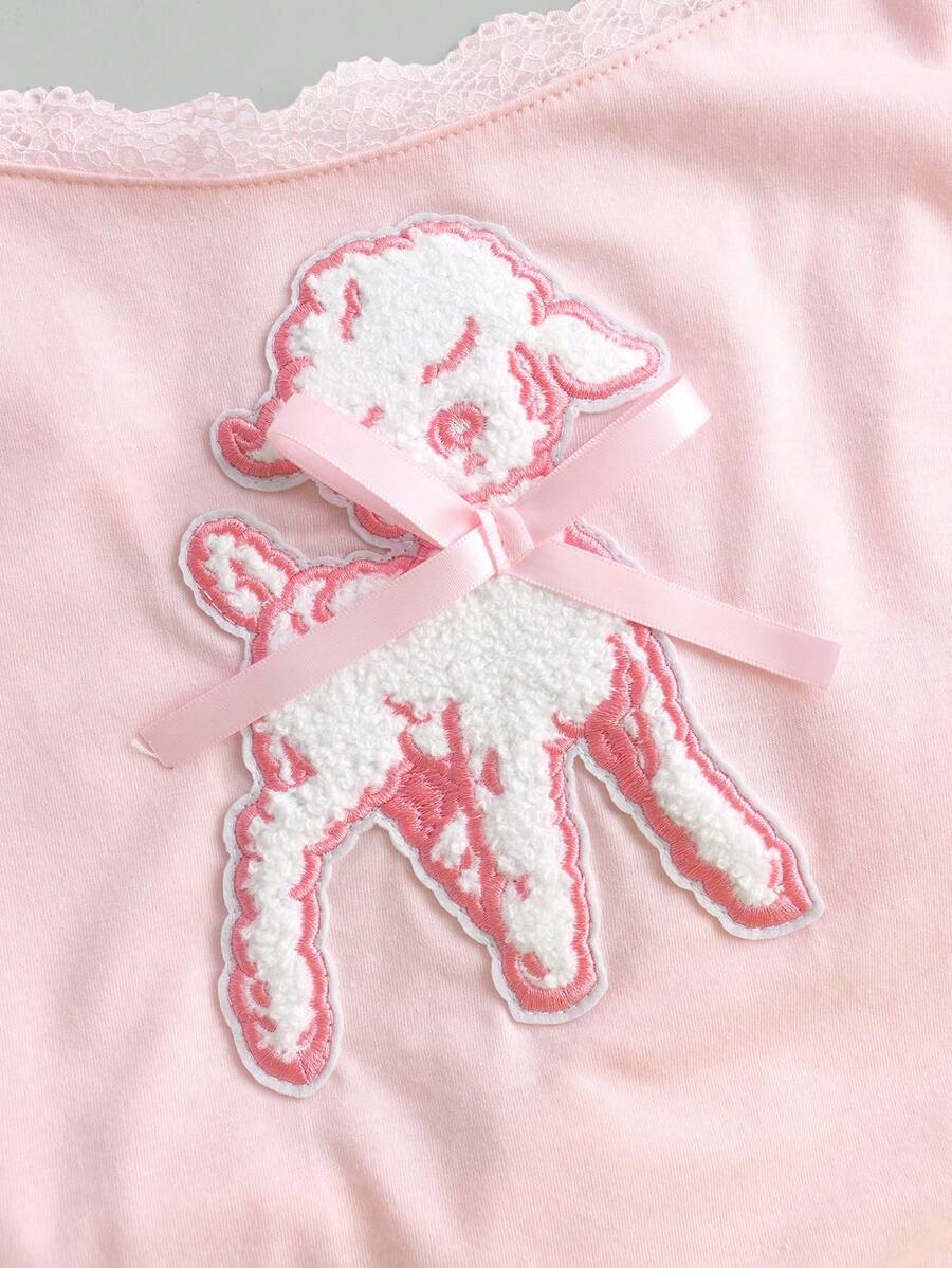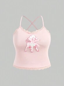 Kawaii Große Größe Cami Top mit Schaf Grafik, Spitzenbesatz,