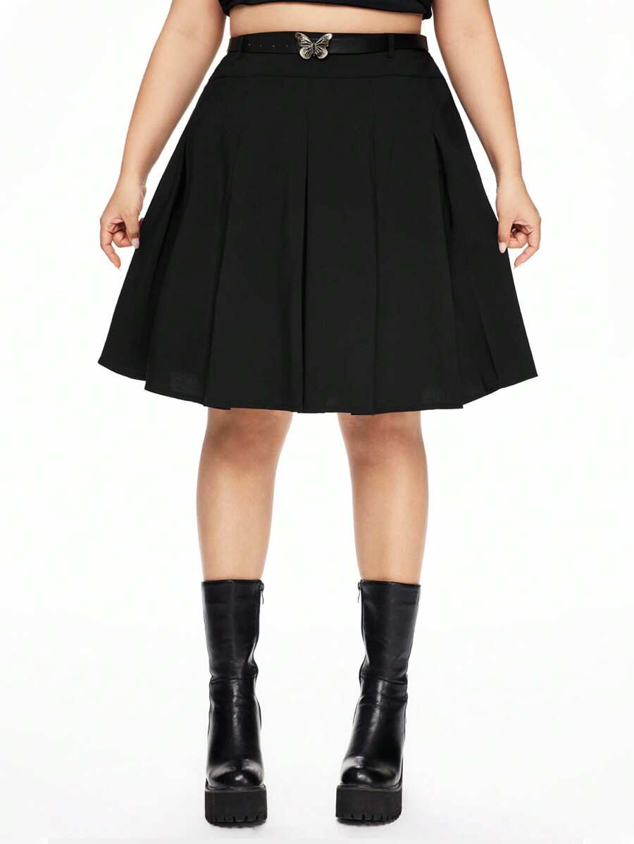 Kawaii Vintage College Stil plissierter Rock Große Größen für Damen mit Schleifengürtel am Bund