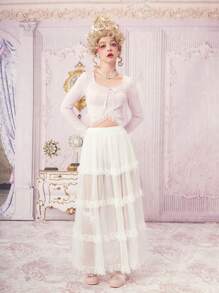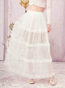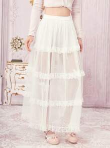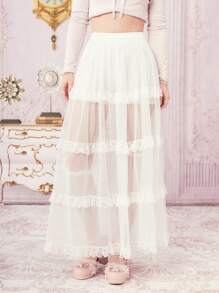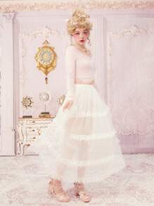 Kawaii Rock mit Rüschenbesatz, Netz-Overlay,