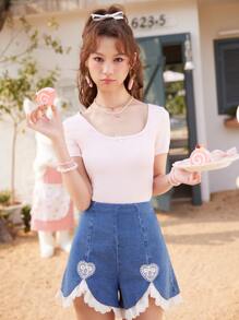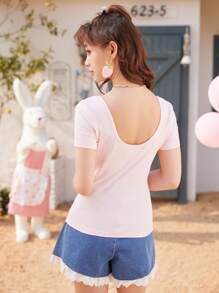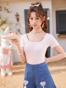 Kawaii Schleifen Einfarbig Lässig Damen T-Shirts