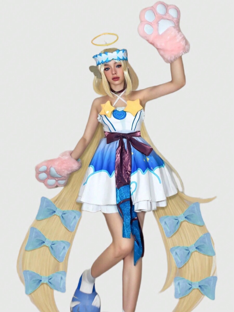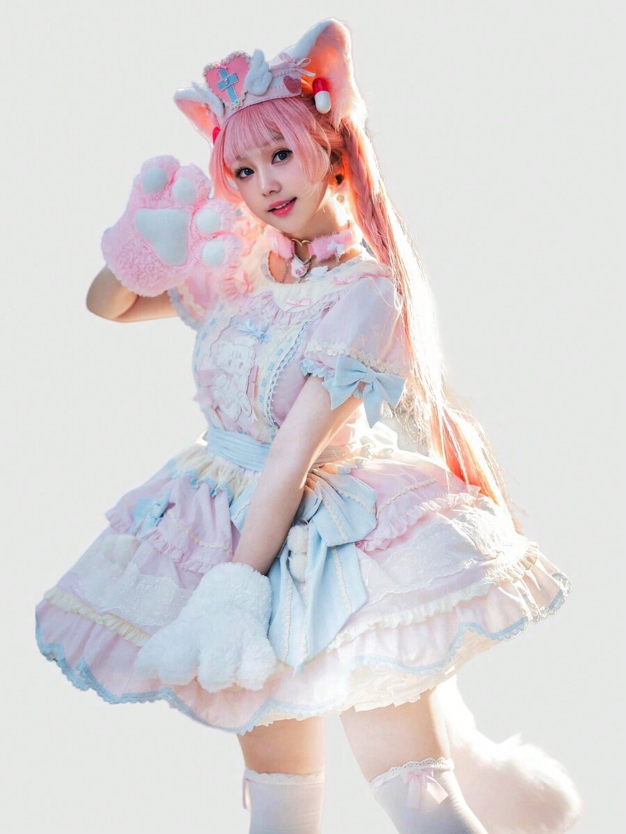 Kawaii Niedliche Damen Cartoon Katzen Klauen Plüsch Handschuhe, warm für Herbst/Winter, Cosplay Accessoires, Katzen Tatzen 2D Handschuhe
