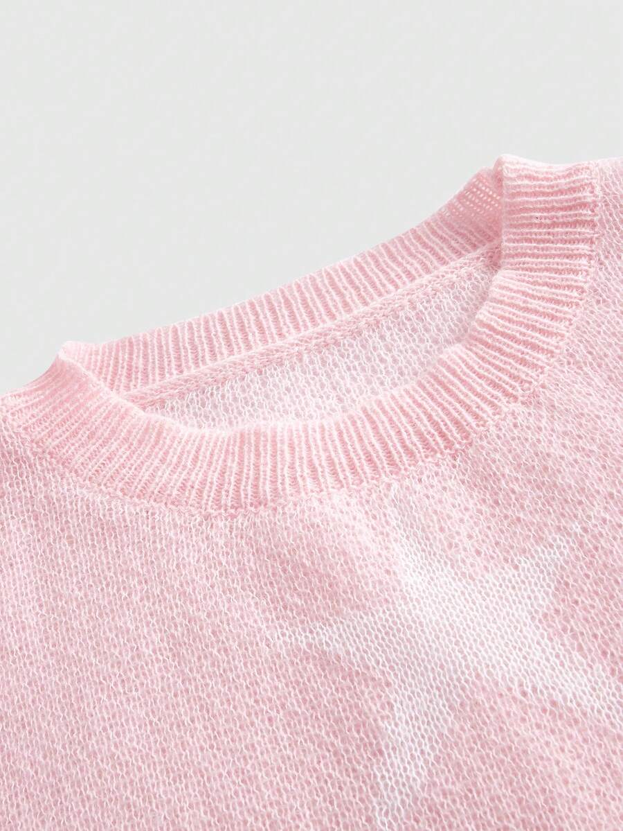 Kawaii Lässiger, Süßer Rosa Damenpullover Mit Stern-jacquard, Löchern Und Pullover-design