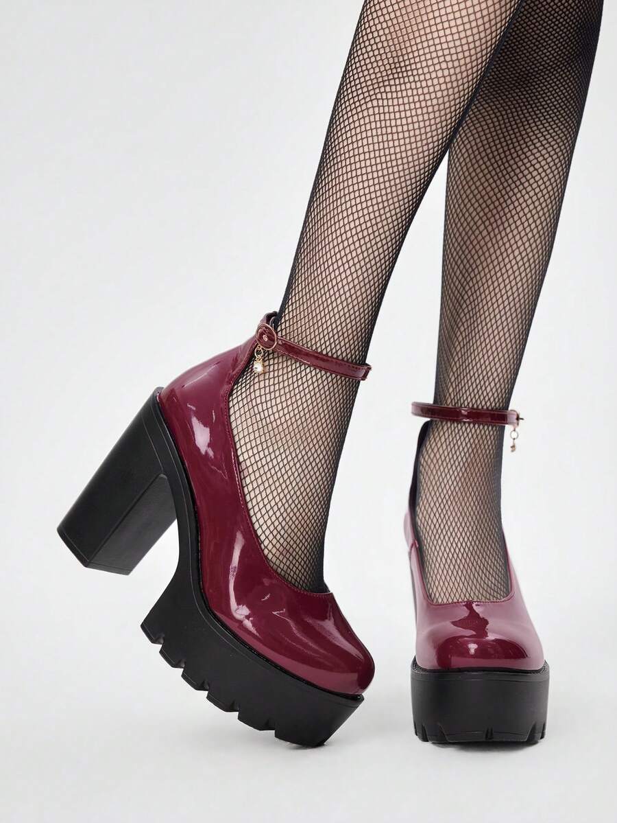 Kawaii Damen Geschlossene Zehen Mary Jane Schuhe mit Kreuzriemen, Punk Goth Plateau Absatz Riemen Schnallen Riemen JK Uniform Schuhe, wasserdichte Arbeitsschuhe mit Absatz