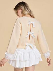 Kawaii Damen gemütlicher, süßer Pullover mit Schleife und Spitzeneinsatz