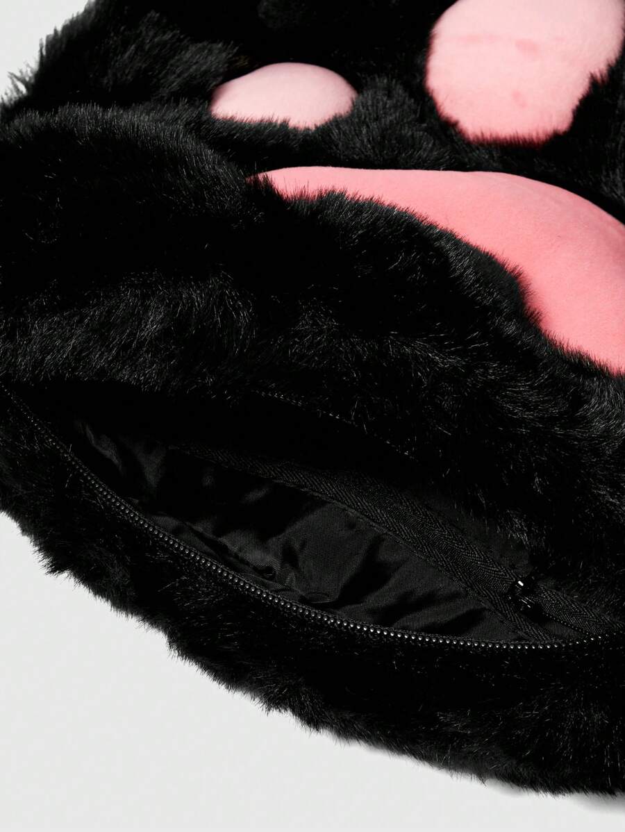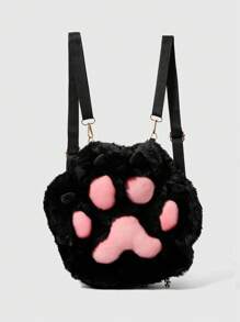 Kawaii Damen süße Katzen Pfoten Plüsch Rucksack, Anime Lolita Stil flauschige Lässig schwarze Tasche