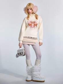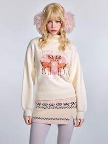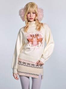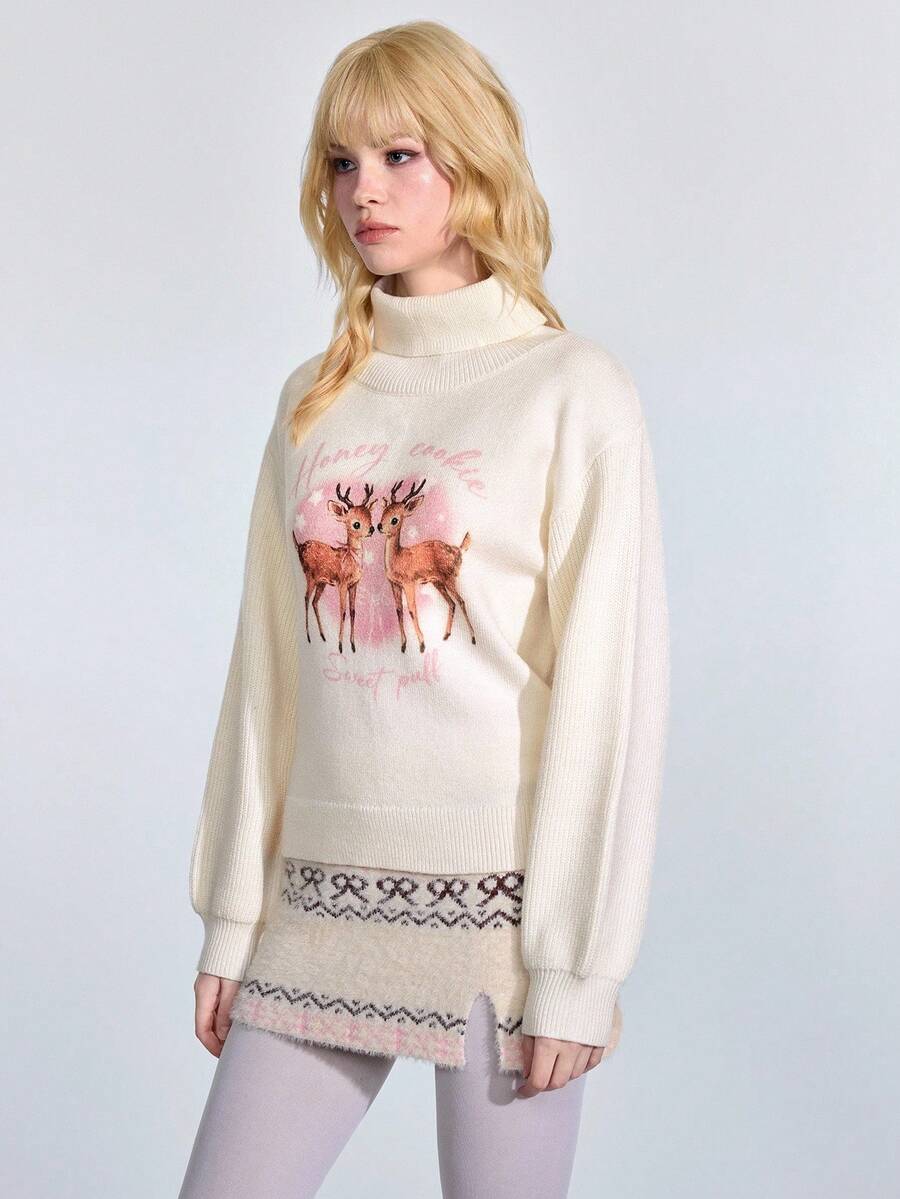 Kawaii Damen süßer Hirsch-Muster Rollkragen Strickpullover