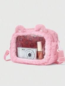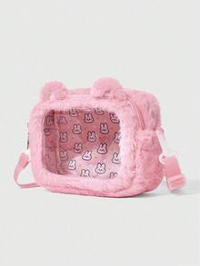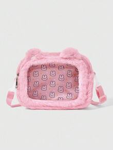 Kawaii Modische, vielseitige Damen-Plüschschulterta-sche mit süßer Stickerei + Hasen-Muster, eine Schulter diagonal