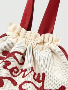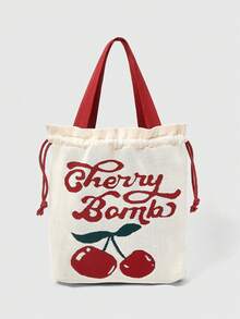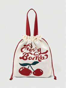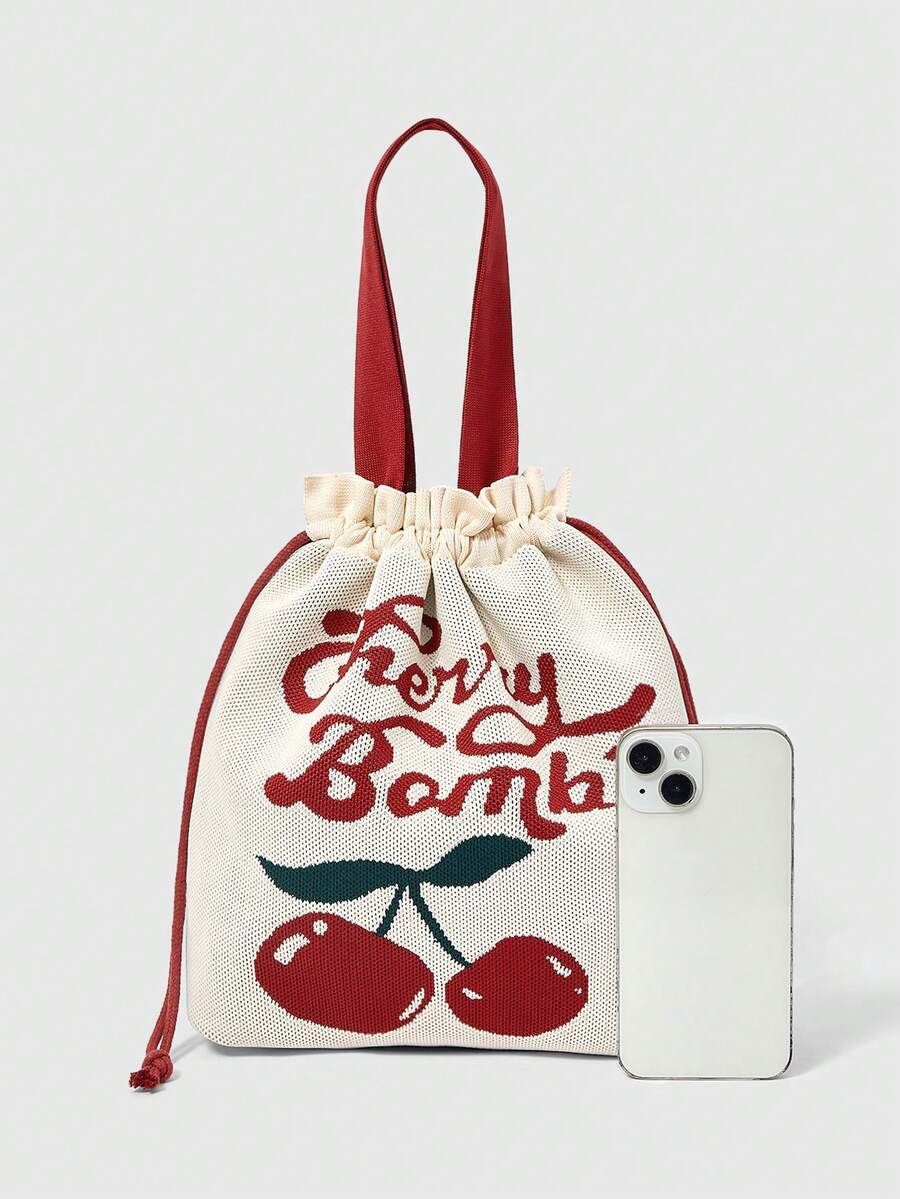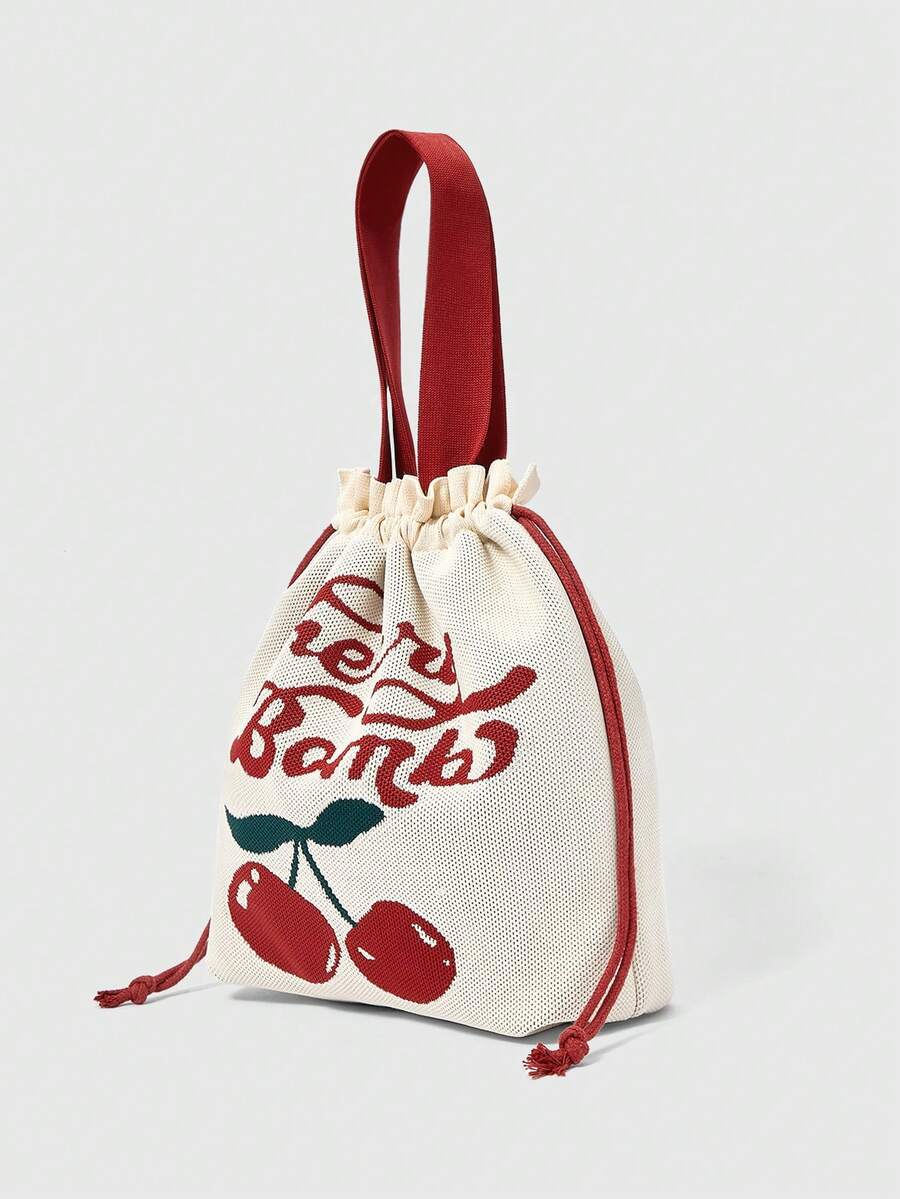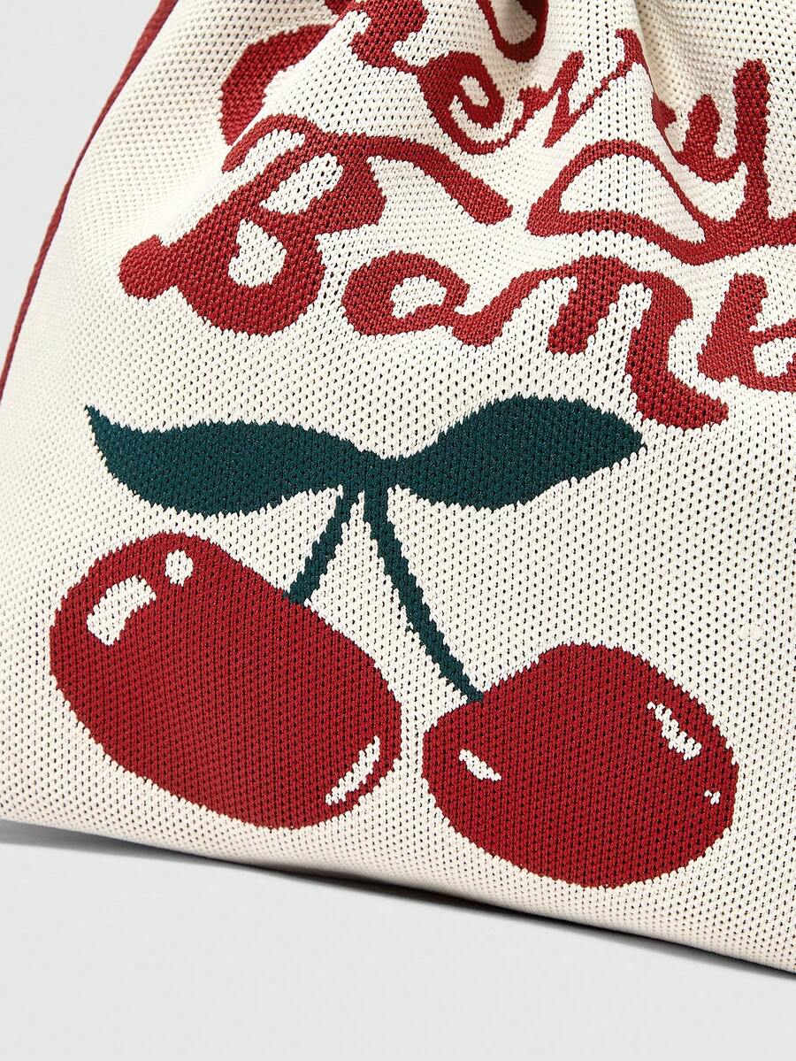 Kawaii Damen Tasche mit Buchstaben- und Kirschen-Muster, großer Kapazität