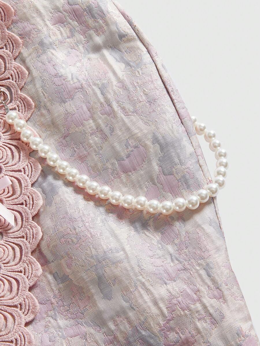 Kawaii Damen Nachmittags-Tee-Party Vintage Perlenkette gewebter Stickerei Spitzenbesatz Fischerhemd Rock, eleganter Hofstil
