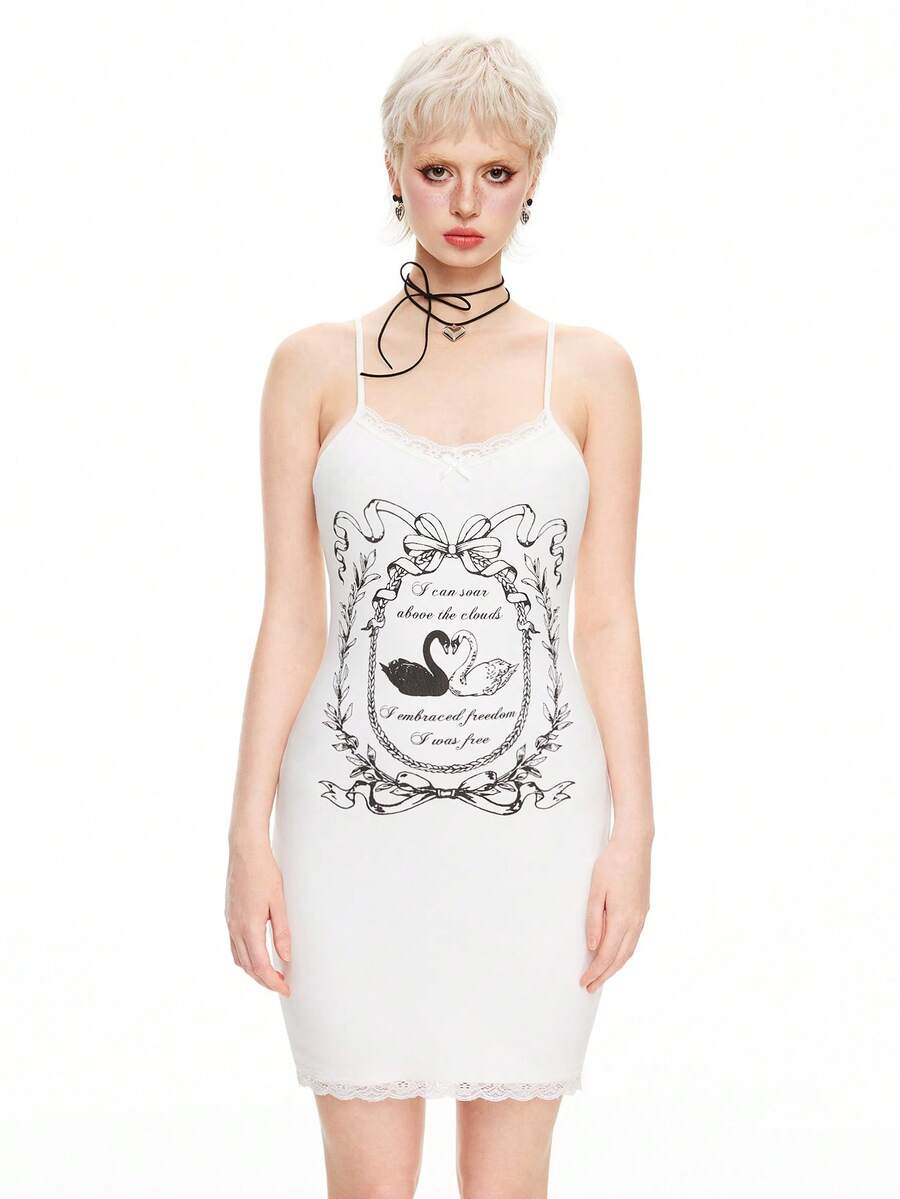 Kawaii Damen ärmelloses Kleid mit Schwan Muster, Schule