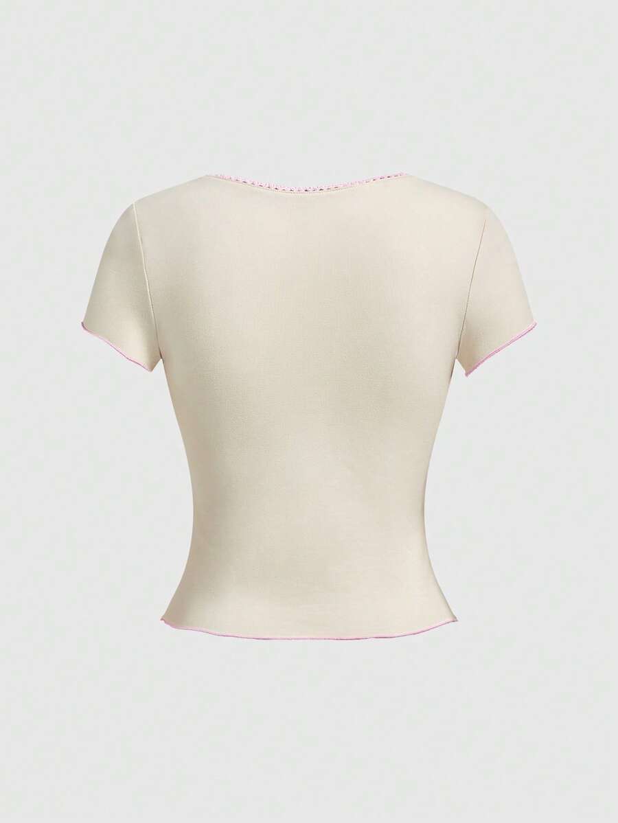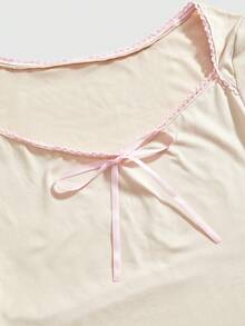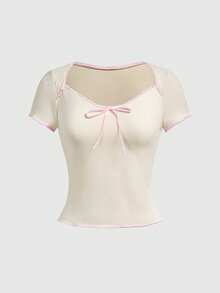 Kawaii Damen Y2K Stil T-Shirt mit Schleifenbesatz