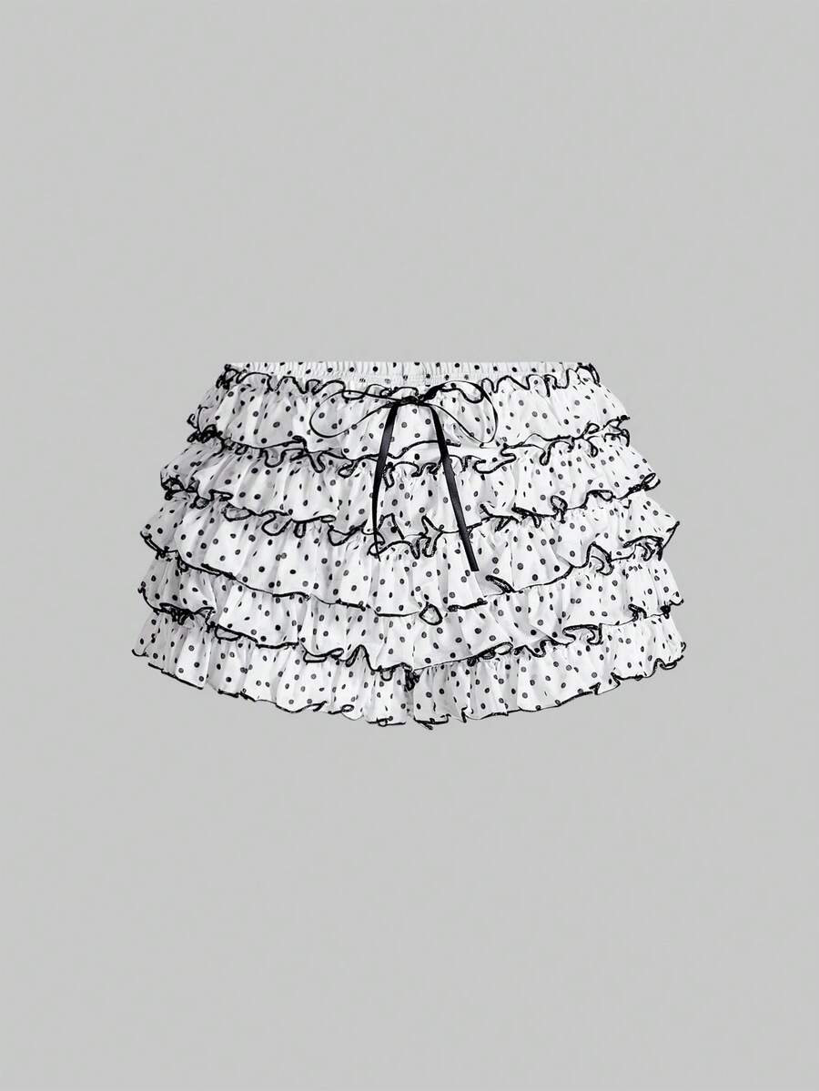 Kawaii Y2K Harajuku mehrschichtige Mesh-Volant-Saum Rehprint Taillenkurze Hose für Frauen