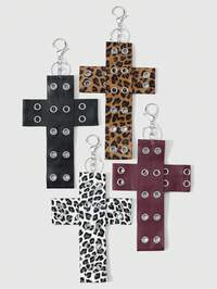 1 zufällige Farbe Y2K Punk süß cool retro einzigartig personalisiert Hot Girl Dark Wind Goth schwarz und weiß/burgund/schwarz/braun Leder Doppelreihe Metall Luftloch Leoparden-/Tigermuster Splicing Kreuz DIY Schlüsselanhänger Zubehör Taschenbehang, Kombinationsset, geeignet für Mädchen und Damen für den täglichen Gebrauch, Urlaubsgeschenke