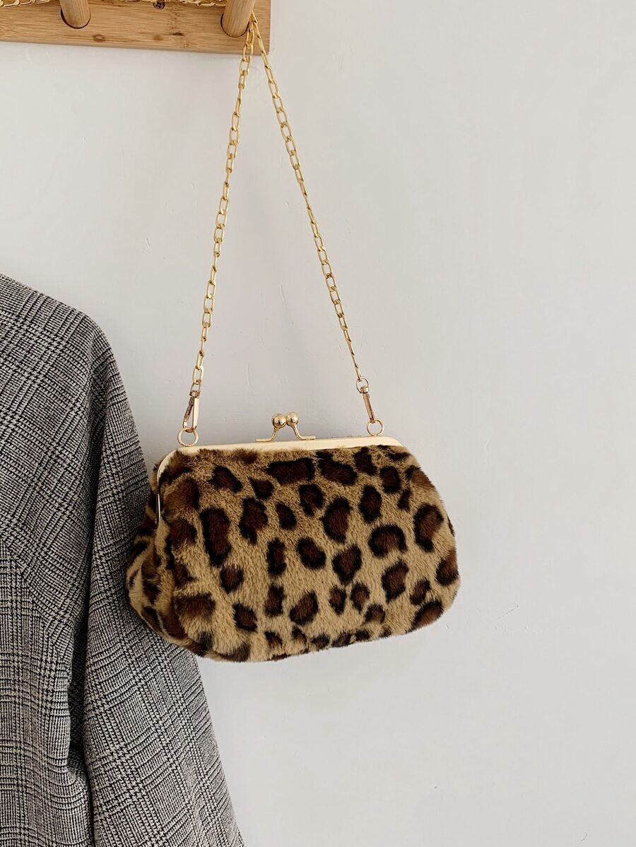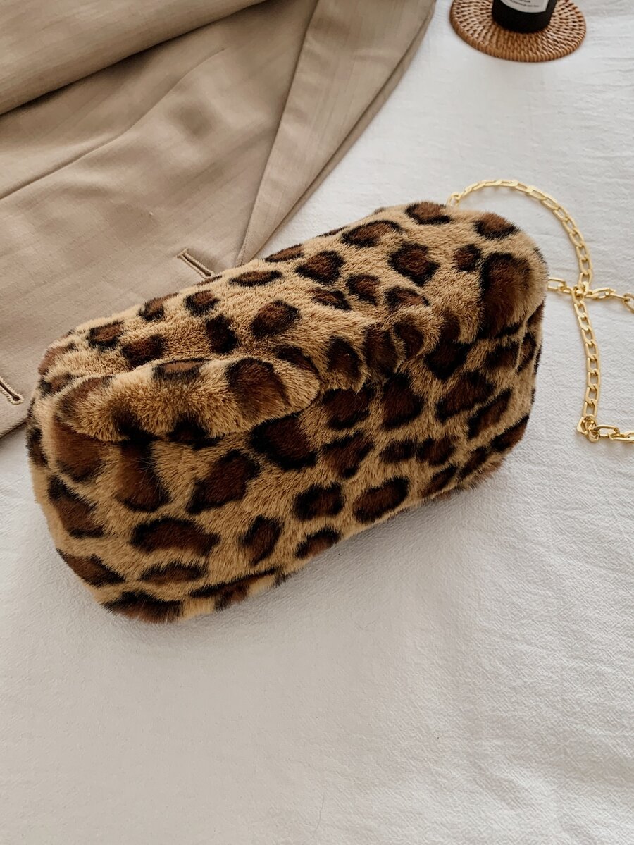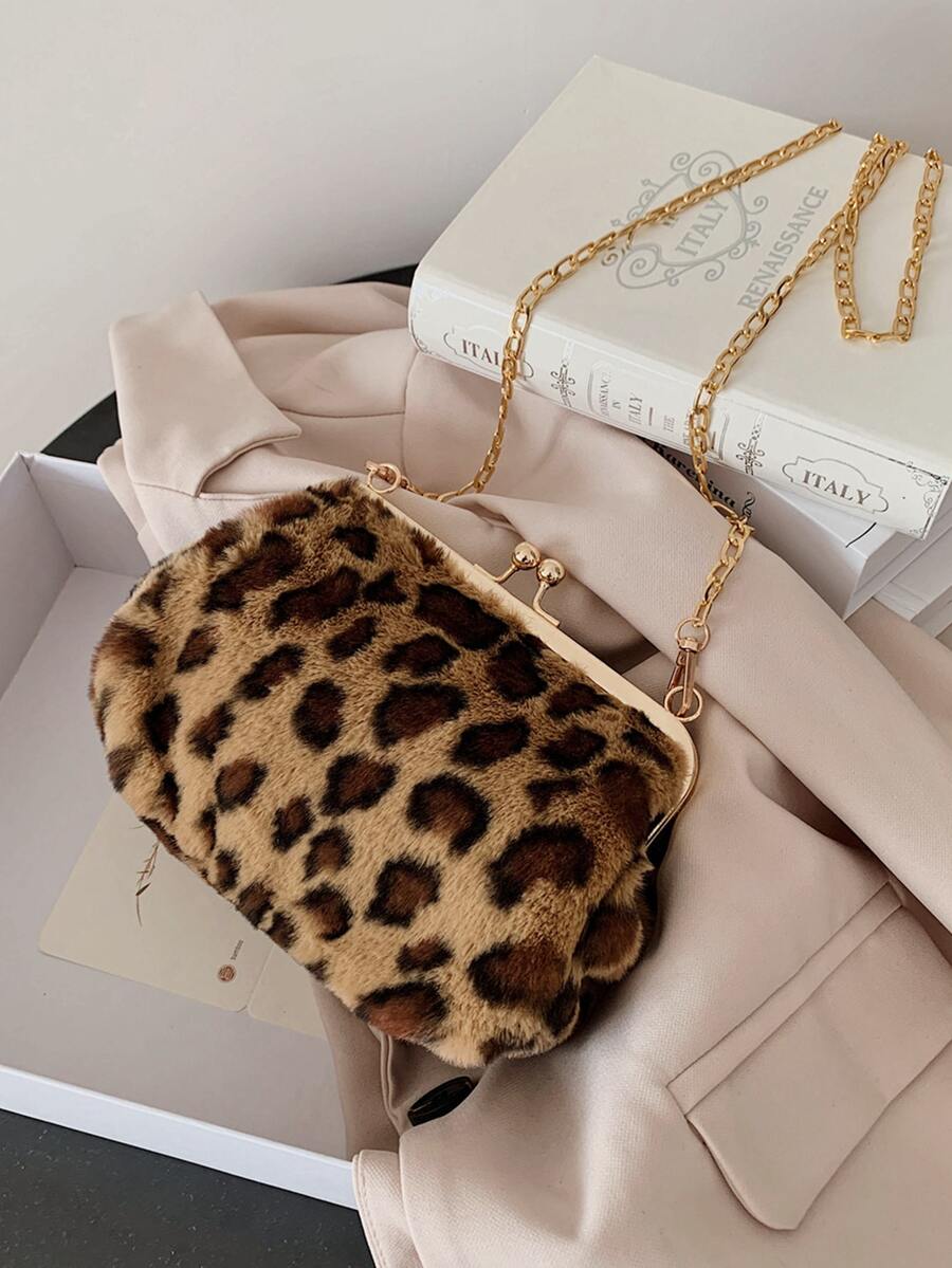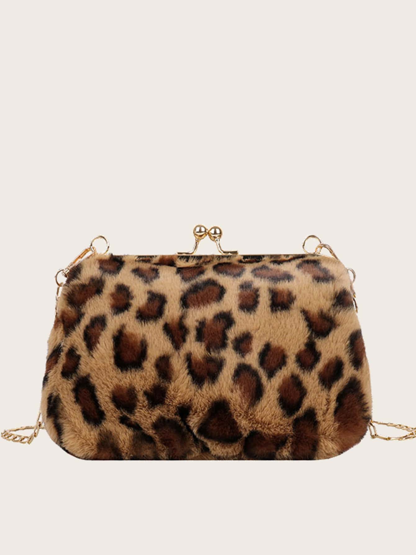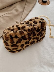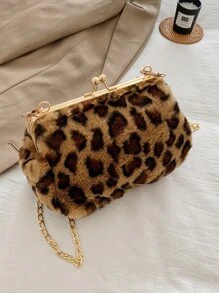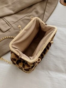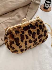 Flaumige Umhängetasche mit Sperren Dekor und Leopard Muster