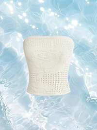 ROMWE Avant Urlaubs-Strand Perlen Dekoration rückenfrei Träger Cut Out Strick Bluse