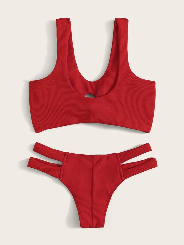Strick Bikini Set mit Knoten vorn und Ausschnitt