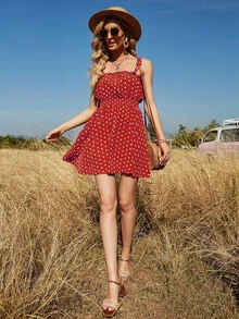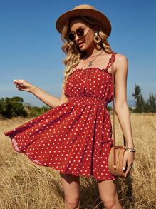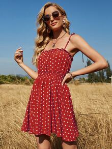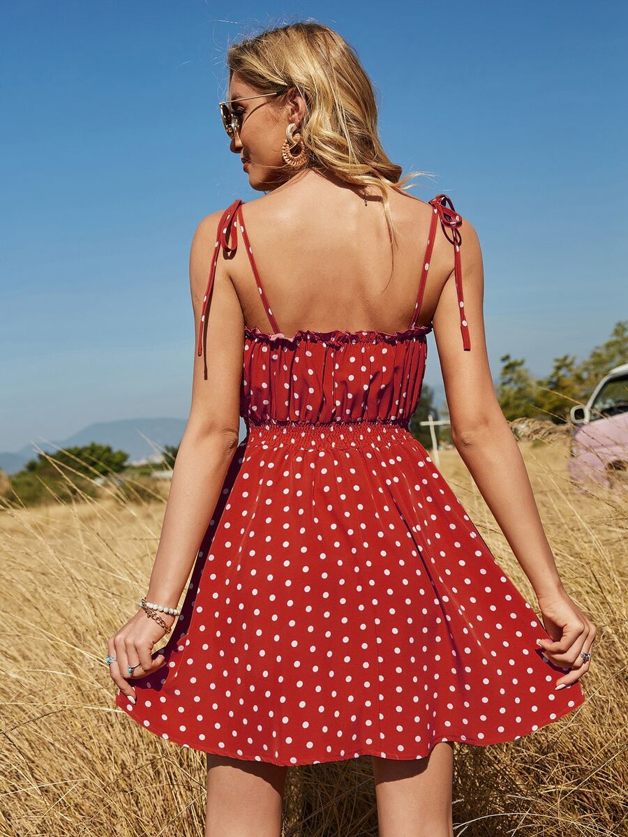 Cami Kleid mit Knoten, Rüschen, geraffter Taille und Punkten Muster