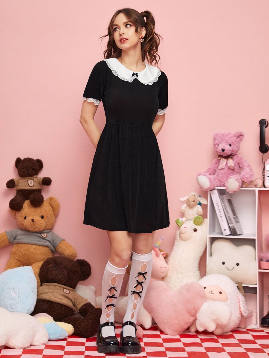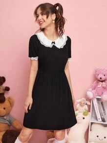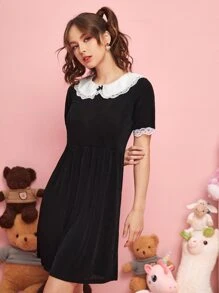 Kleid mit Spitzenbesatz, Peter-Pan Kragen