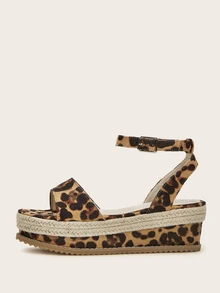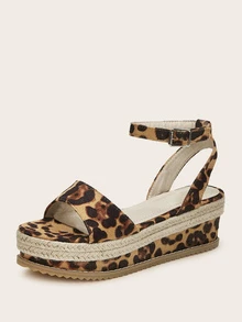 Espadrille Keilschuhe mit Leopard Muster und Knöchelriemen