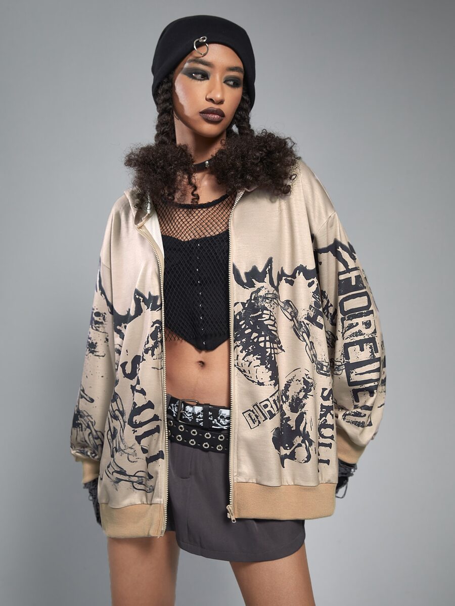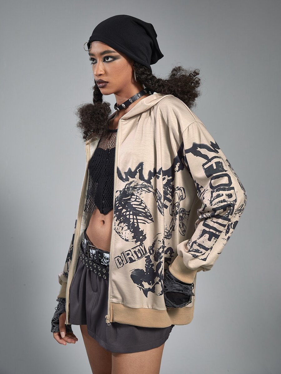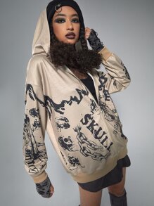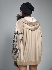 Kapuzenpullover mit Reißverschluss Buchstabe & Grafik Muster