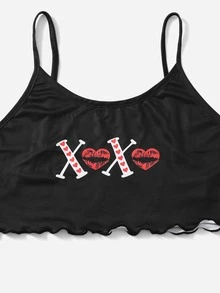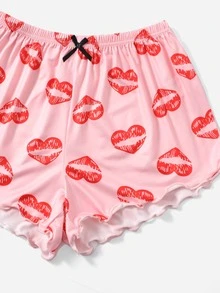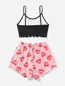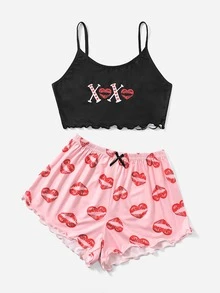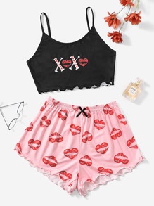 Shorts & Cami Top mit Buchstabe & Lippe Wellensaum