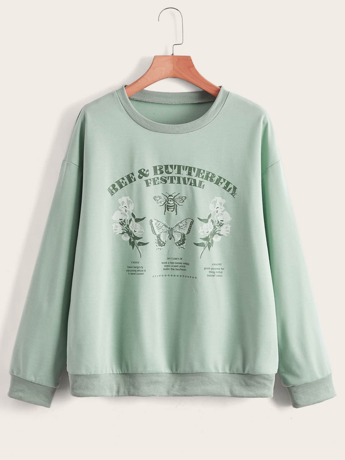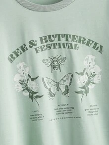 Sweatshirt mit Buchstabe, Schmetterling & Blume Grafik