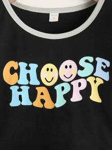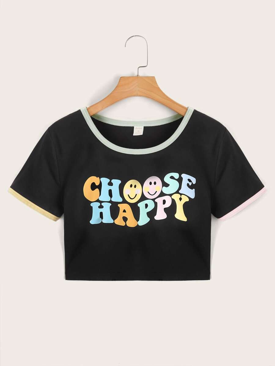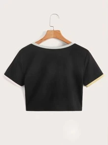 Crop T-Shirt mit Buchstabe Cartoon Grafik, Ringer