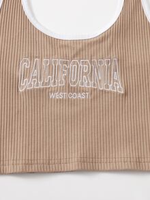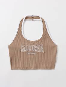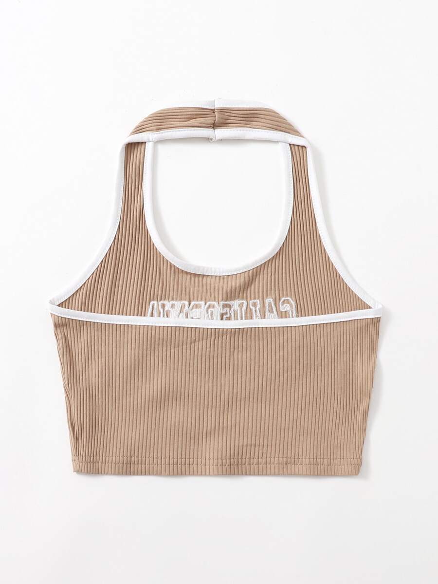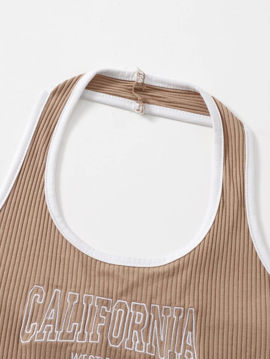 Geripptes Ringer Halter Top mit Buchstaben Stickereien