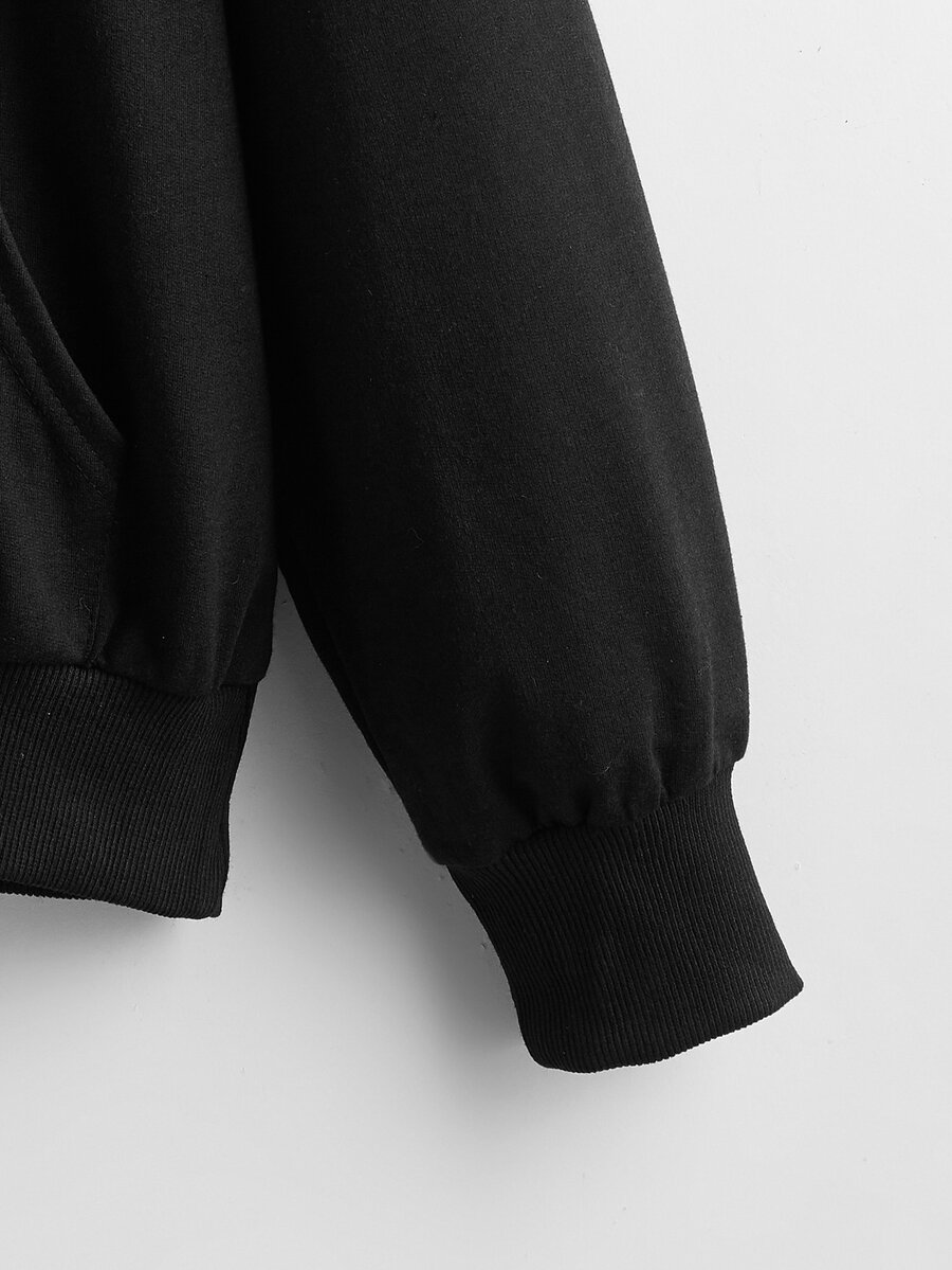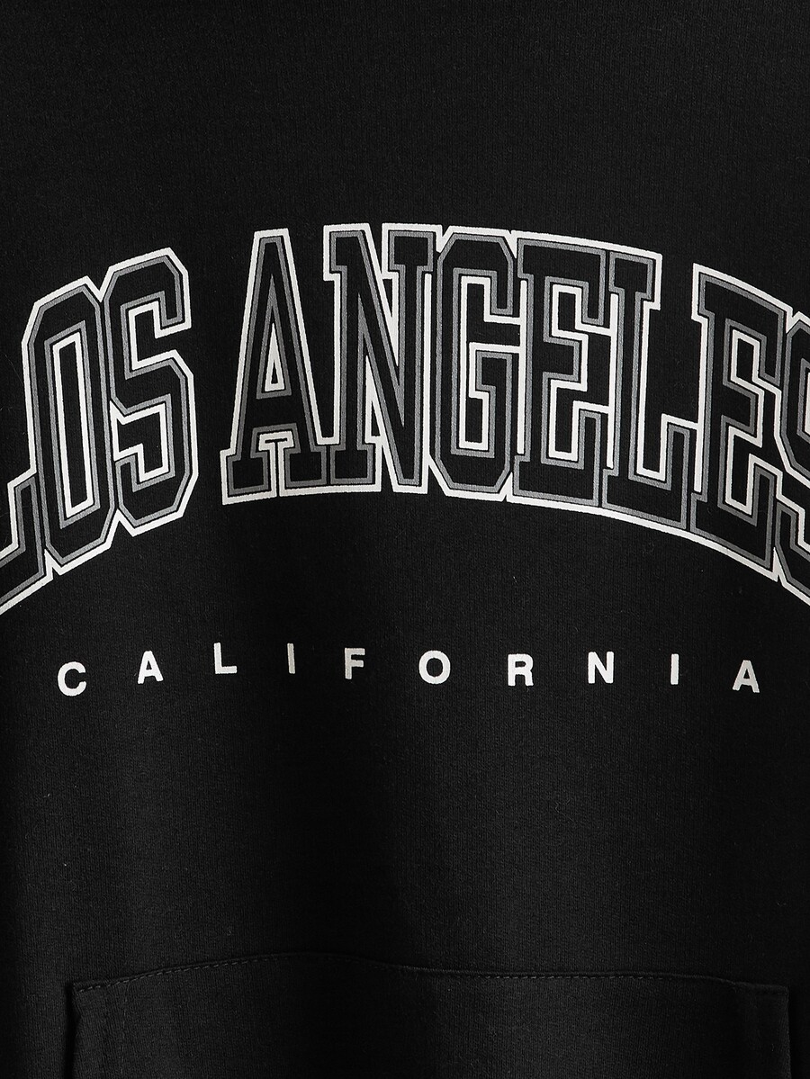 Hoodie mit Buchstaben Grafik, Känguru-Tasche, Tunnelzug