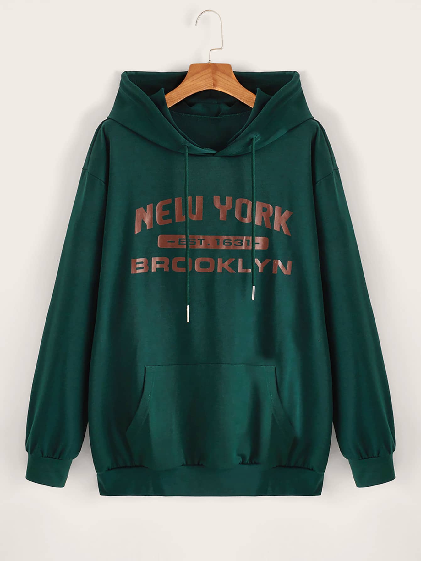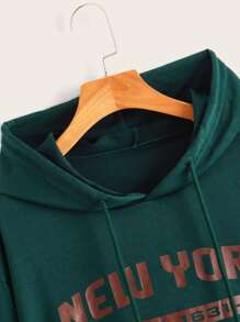 Hoodie mit Buchstaben Grafik, Känguru-Tasche, Drop Shoulder Tunnelzug