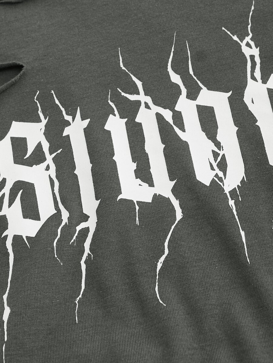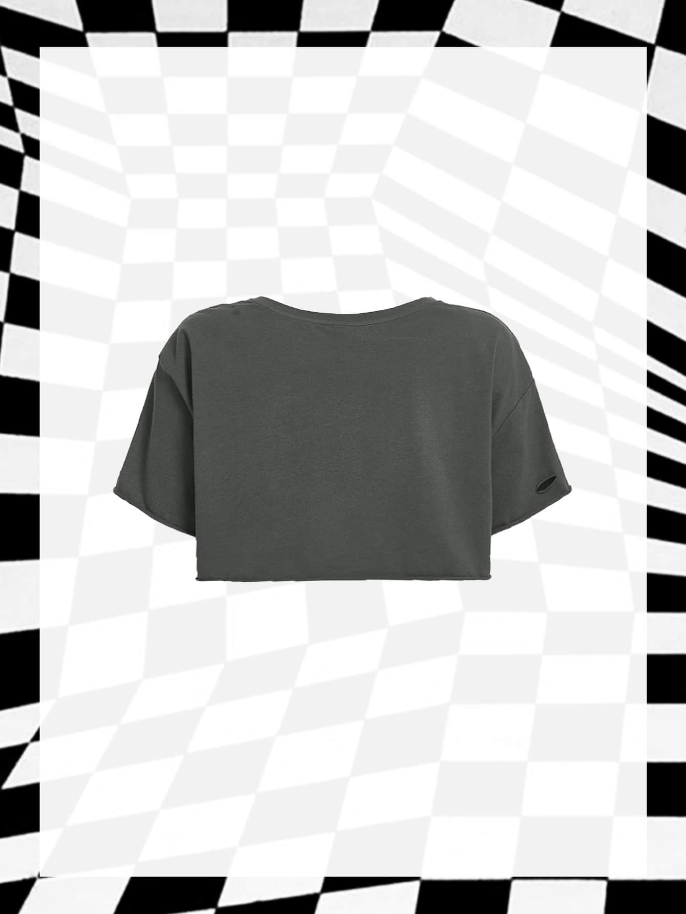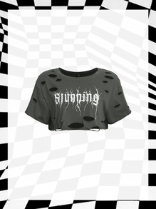 Crop T-Shirt mit Riss, Buchstaben Grafik