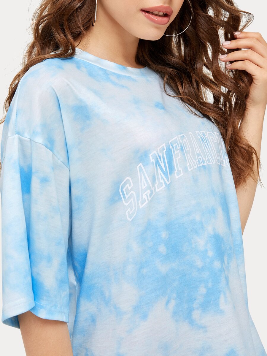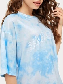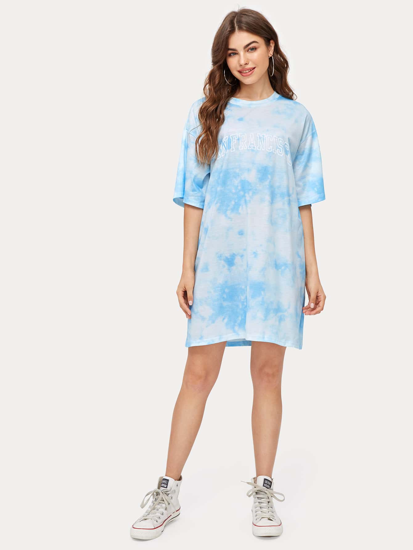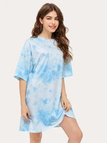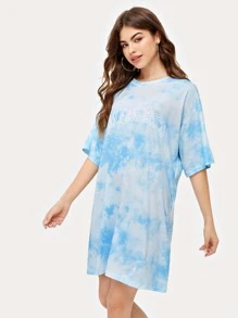 T-Shirt Kleid mit Buchstaben Grafik und Batik