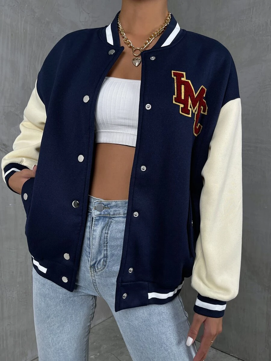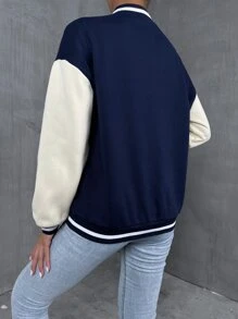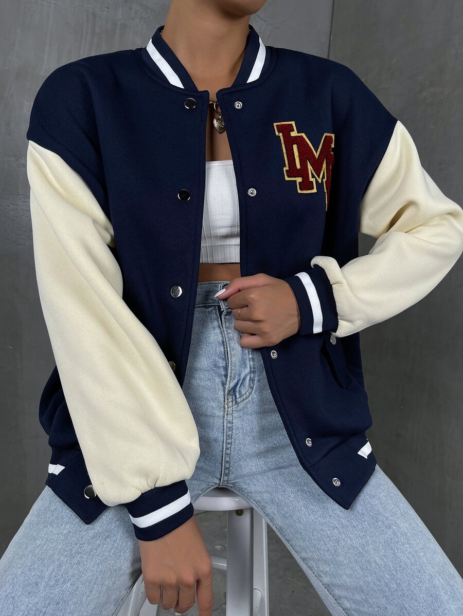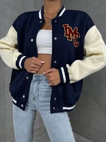 College Jacke mit Buchstabe Flicken Detail, sehr tief angesetzter Schulterpartie, Farbblock