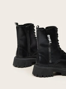 Kampfstiefel mit Buchstaben Muster und Reißverschluss zum Schnüren