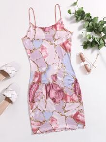 Komplett bedrucktes Cami Kleid mit gekräuseltem Saum