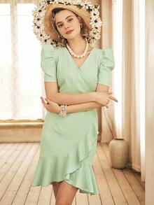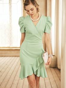 MIUSOL Kleid mit Puffärmeln und Rüschenbesatz