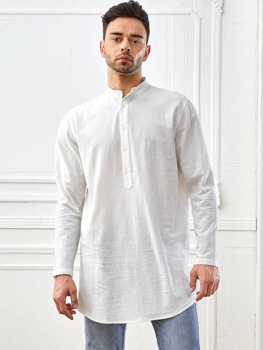 GENTILAND Herren Baumwolle Hemd mit Knopfleiste und halber Knopfleiste