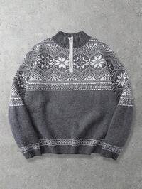 Herren Lässig Pullover mit geometrischem Muster und Viertelreißverschluss, Herbst/Winter